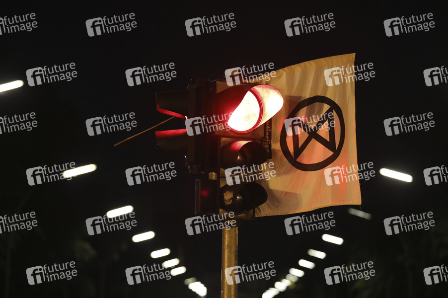 Demonstration, Demonstranten, Demo, Kundgebung, Protest, Aktion, Banner, Parolen, Politik, Umweltschutz, Klimawandel, Klimakrise, Blockade, weltweite soziale Bewegung, Ampel