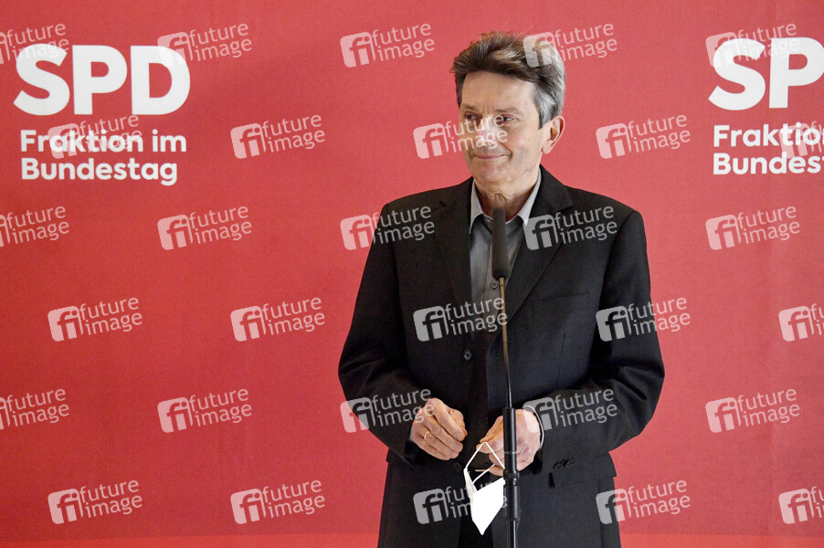 Rolf Mützenich bei einem Pressestatement der SPD vor der Fraktionssitzung auf der Fraktionsebene im Reichstagsgebäude. Berlin, 13.04.2021