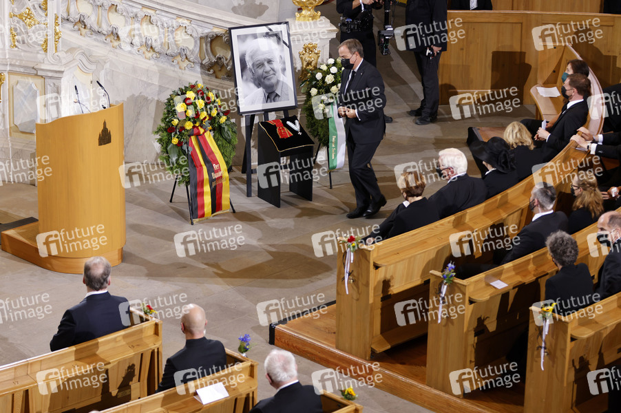 Armin Laschet beim Trauerstaatsakt zu Ehren des verstorbenen früheren Ministerpräsidenten Kurt Biedenkopf in der Frauenkirche Dresden. Dresden, 03.09.2021