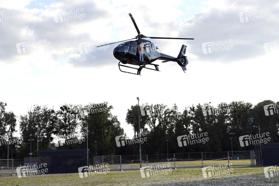 Moderator, Komiker, Entertainer, Prominenz, Celebrity, Celebrities, Auftritt, Bühne, Stage, live, Unterhaltung, Entertainment, Kultur, Open Air, Autokonzertreihe, Autokonzert, Auto-Konzert, Autokino-Konzert, Ankunft Helicopter, Hubschrauber