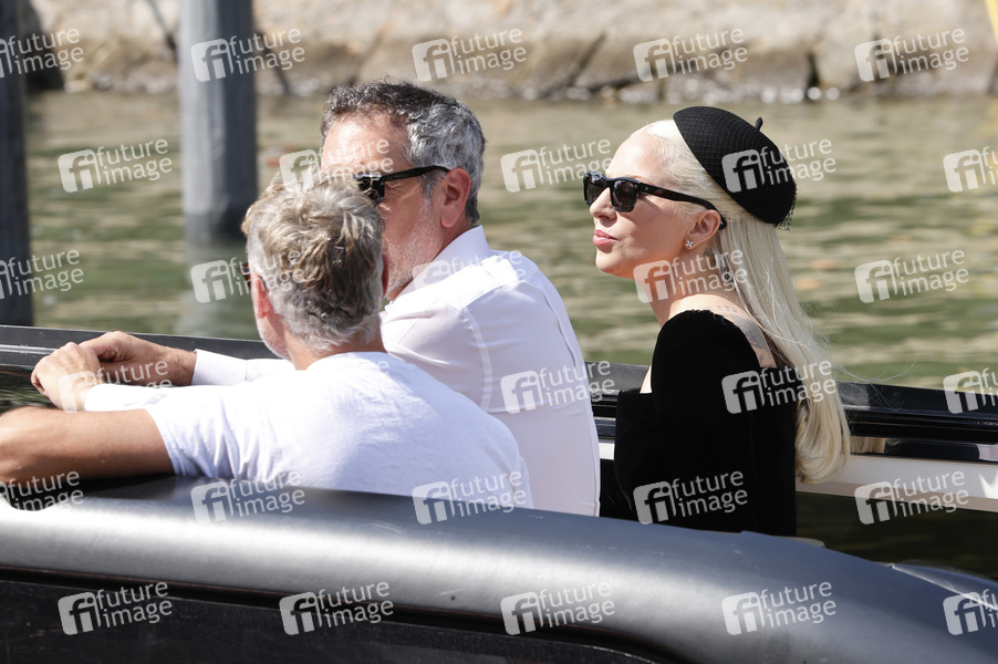 Joaquin Phoenix, Todd Phillips und Lady Gaga bei der Ankunft am Pier des Palazzo del Cinema auf der Biennale di Venezia 2024 / 81. Internationale Filmfestspiele von Venedig. Venedig, 04.09.2024