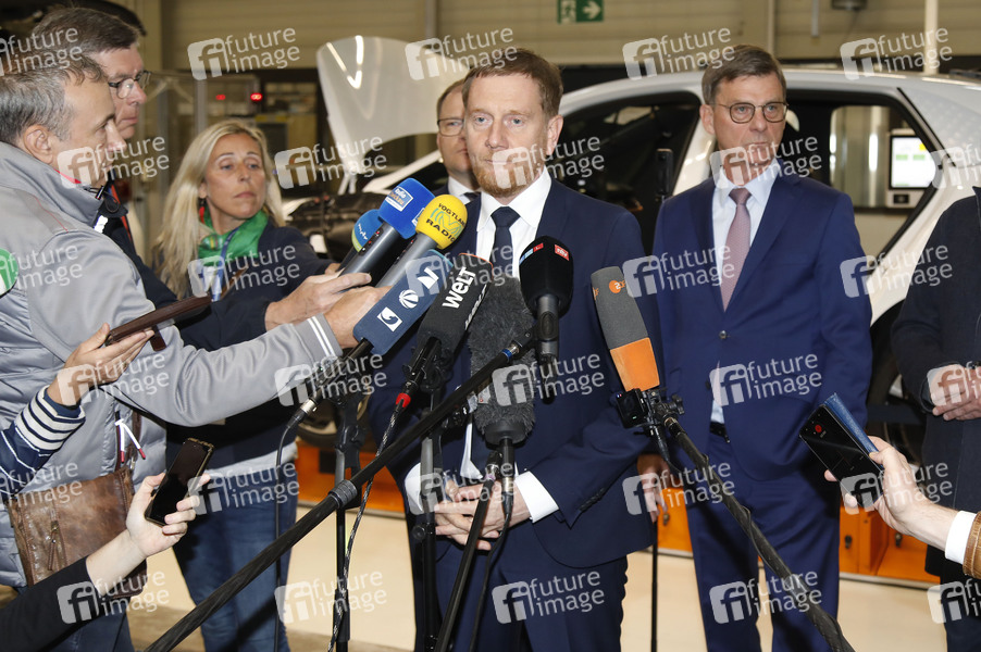 Michael Kretschmer beim Besuch im Werk von Volkswagen in Zwickau. Zwickau, 13.10.2025