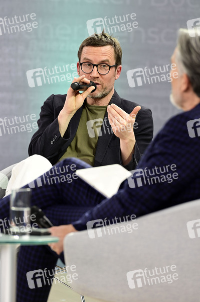 Philipp Felsch im Gespräch zu seinem Buch 'Der Philosoph: Habermas und wir' auf der ARD, ZDF und 3sat Literaturbühne auf der Leipziger Buchmesse 2024 auf dem Messegelände. Leipzig, 21.03.2024