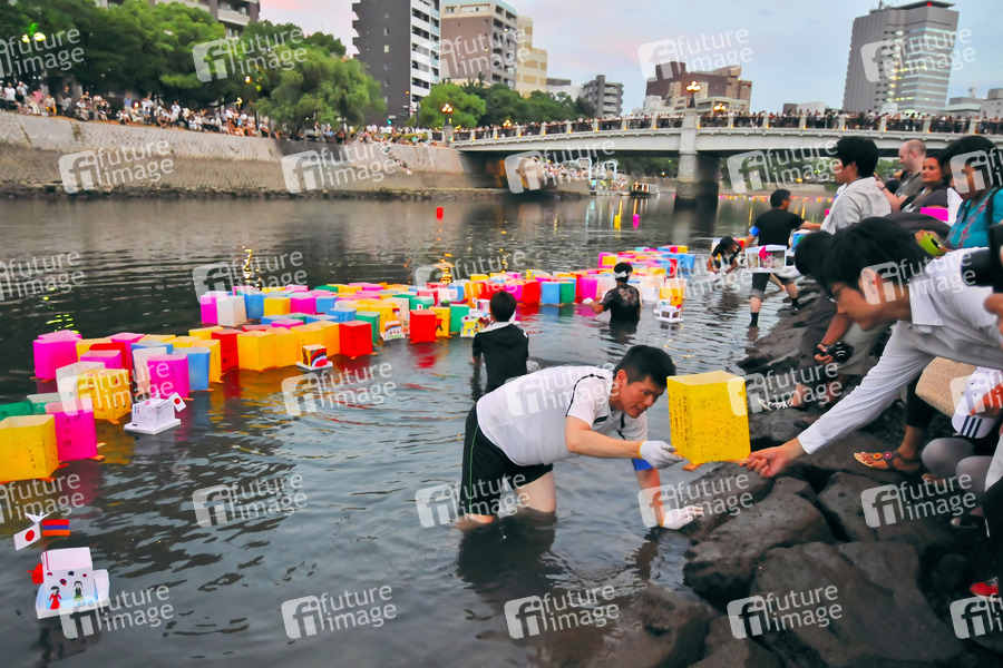 67. Gedenktag des Abwurfs der Atombombe auf Hiroshima. Laternen auf dem Motoyasu-Fluss am Friedensdenkmal in Hiroshima