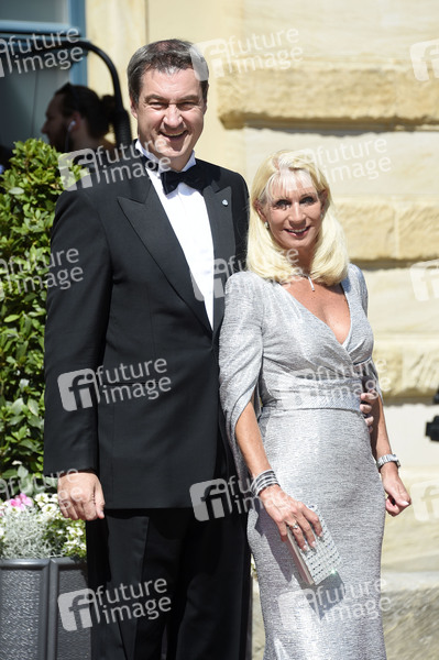 Markus Söder mit Ehefrau Karin Baumüller bei der Eröffnung der Richard-Wagner-Festspiele 2019 mit der Premiere 'Tannhäuser' im Bayreuther Festspielhaus. Bayreuth, 25.07.2019