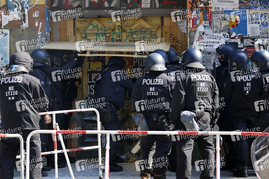 Eingang, Hausbesetzer, Linksextreme, Linkes Wohnprojekt, Linksextremismus, Brandschutz, Räumung, Räumungsklage, Brandschutzgutachten, Begehung, teilbesetztes Haus, Firma Lafone Investments Ltd., Eigentümer, Hauseigentümer, Wahlkampfthema, Berliner Senat, Berliner Politik, linke Szene, Friedrichshain, Brandschutz, Gewalt, Gewaltbereitschaft, Polizei, Polizisten, Polizeieinsatz