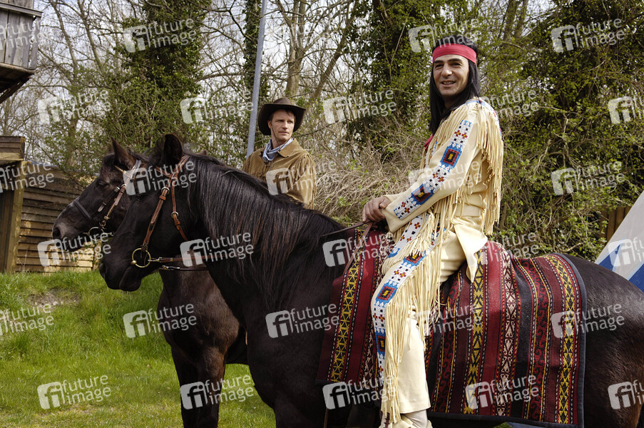 Pressetermin zu 'Winnetou I' der Karl May Freilichtspiele mit Erol Sander als Winnetou und Thorsten Nindel als Old Shatterhand im Indian Village, Bad Segeberg