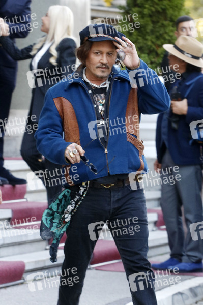 Johnny Depp nach dem Empfang bei Präsident Aleksandar Vucic anlässlich der ersten in Serbien produzierten Zeichentrickserie 'Puffins' im Gebäude des Generalsekretariats des Präsidenten der Republik Serbien. Belgrad, 19.10.2021