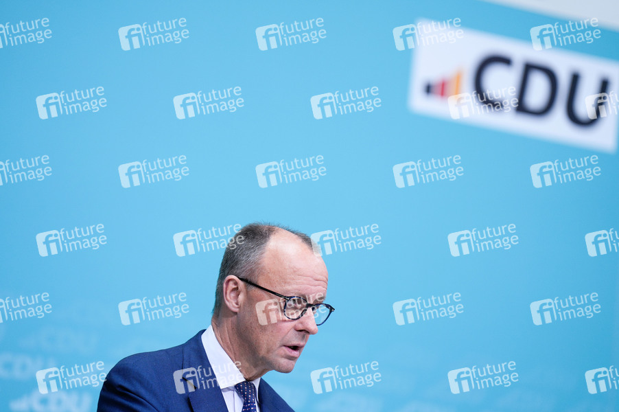 Friedrich Merz bei einer Pressekonferenz nach der Bundesvorstandssitzung der CDU mit der Bekanntgabe der Nominierung von Ursula von der Leyen als Spitzenkandidatin für die Europawahl im Konrad-Adenauer-Haus. Berlin, 19.02.2024