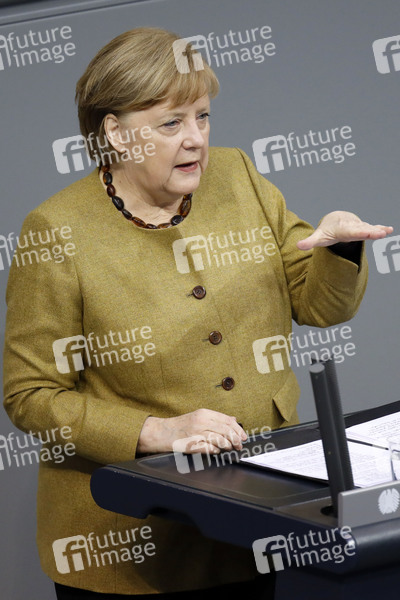 Angela Merkel in der 209. Sitzung des Deutschen Bundestages im Reichstagsgebäude. Berlin, 11.02.2021
