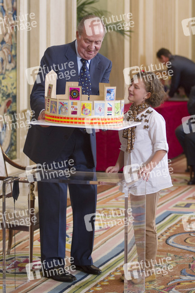 König Juan Carlos empfängt die Gewinner des 'Qué es un Rey para ti' Schulwettbewerbs im Zarzuela Palast, Madrid