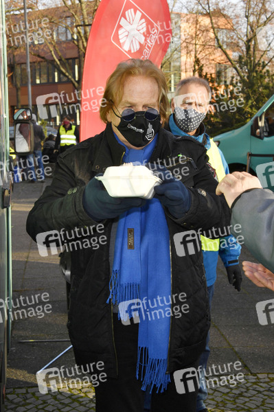 Frank Zander verteilt Essen und Geschenke aus dem Food Truck an Obdachlose und Bedürftige. Berlin, 18.12.2020