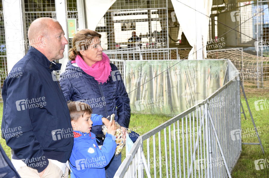 Heino Ferch mit Ehefrau Marie-Jeanette und Sohn Gustav Theo Cian beim Presserundgang auf der Circus Krone-Farm. Weßling, 29.06.2020
