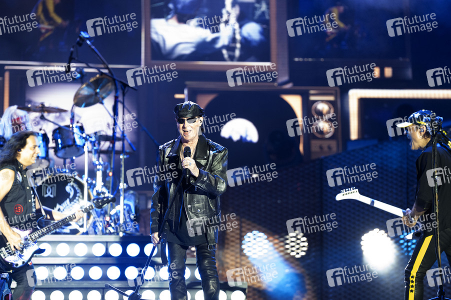 Pawel Maciwoda, Klaus Meine und Matthias Jabs von den Scorpions live bei der Konzertreihe 'Moon&Stars 2025' auf der Piazza Grande. Locarno, 12.07.2025