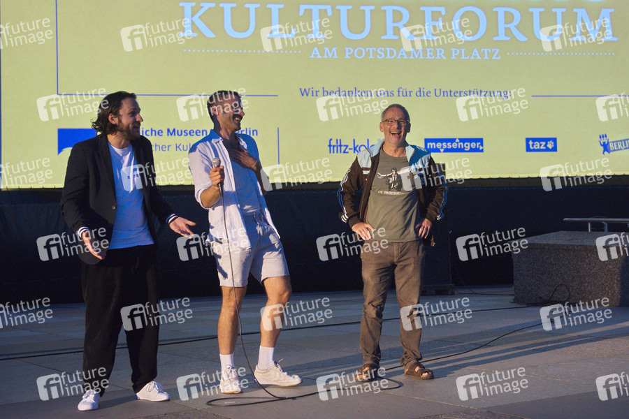 Dimitrij Schaad, Marcel Danner und Dani Levy bei der Open-Air-Premiere des Kinofilms 'Die Känguru-Chroniken Reloaded 3D' im Arte Sommerkino Kulturforum. Berlin, 16.06.2020