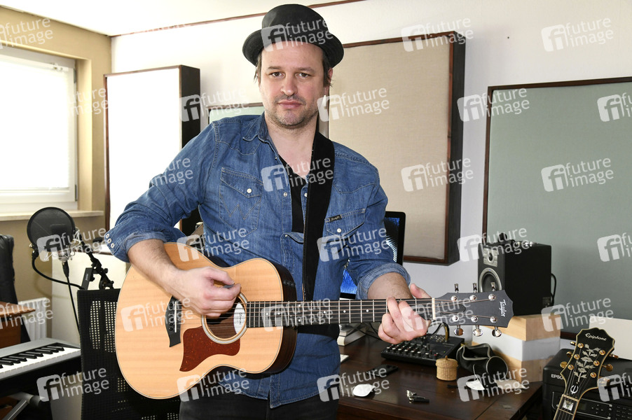 Phil Höcketstaller von Hundling beim aktuellen Tonstudio-Bahnhofsmission Spezial mit dem aktuellen Video 'Wofür?' in der Lockdown Version in seinem Tonstudio bei München. 17.02.2021