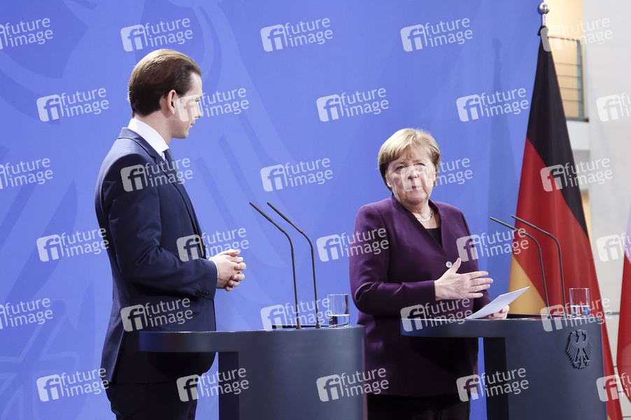 Sebastian Kurz und Angela Merkel bei einer Pressekonferenz im Kanzleramt. Berlin, 03.02.2020
