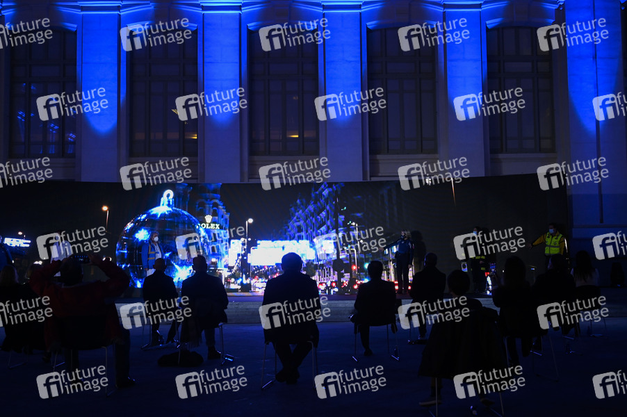 Einschalten der traditionellen Weihnachtsbeleuchtung im Stadtzentrum. Madrid 26.11.2020