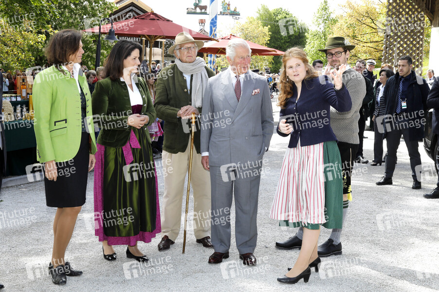 Ilse Aigner, Michaela Kaniber, Karl Ludwig Schweisfurth, Prinz Chalres, Sophie Schweisfurth und Mathias Stinglwagner beim Besuch der britischen Royals auf dem Bio-Bauernhof Herrmannsdorfer Landwerkstätten. Glonn, 10.05.2019