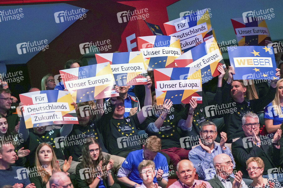 CDU/CSU-Anhänger beim Wahlkampfauftakt der CDU und CSU zur Europawahl 2019 in der Halle Münsterland. Münster, 27.04.2019