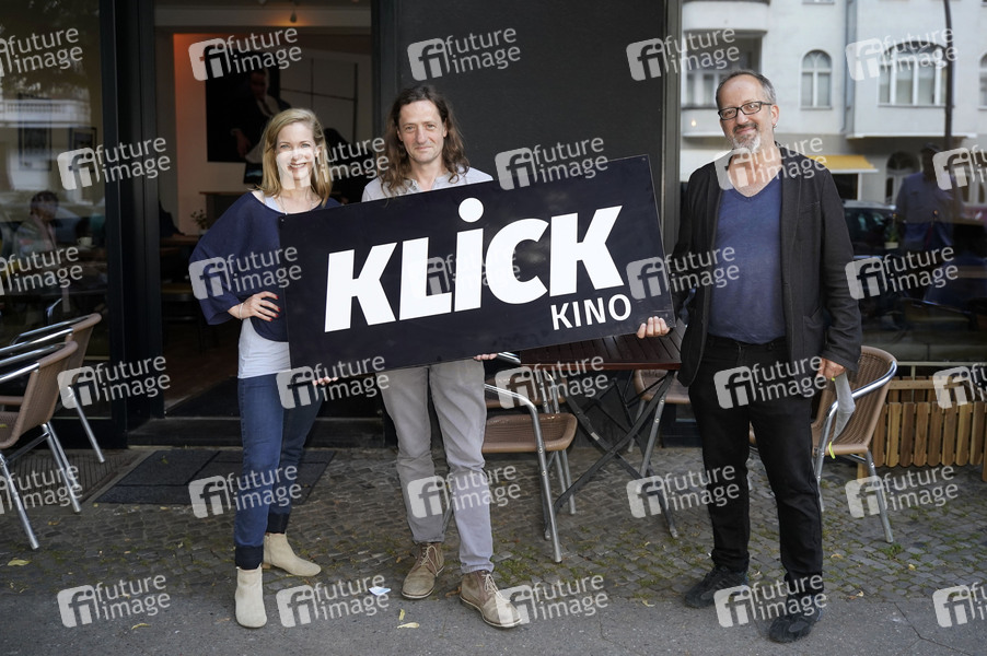 Martina Klier, Sascha Grunow und Christos Acrivulis bei der Wiedereröffnung des Programmkinos 'Klick' in Charlottenburg nach dem Lockdown wegen der Corona-Epidemie. Berlin, 02.07.2020