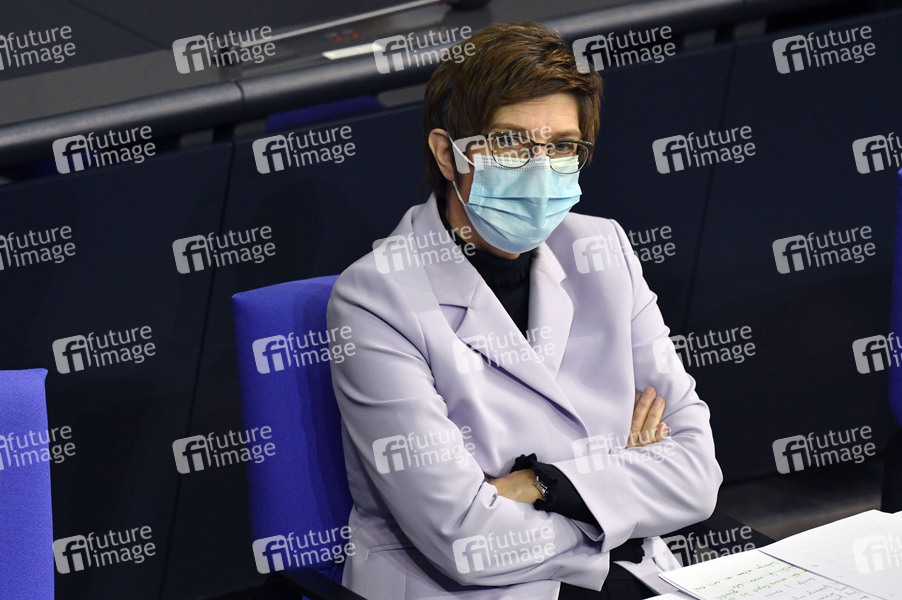 Annegret Kramp-Karrenbauer in der 215. Sitzung des Deutschen Bundestages im Reichstagsgebäude. Berlin, 04.03.2021