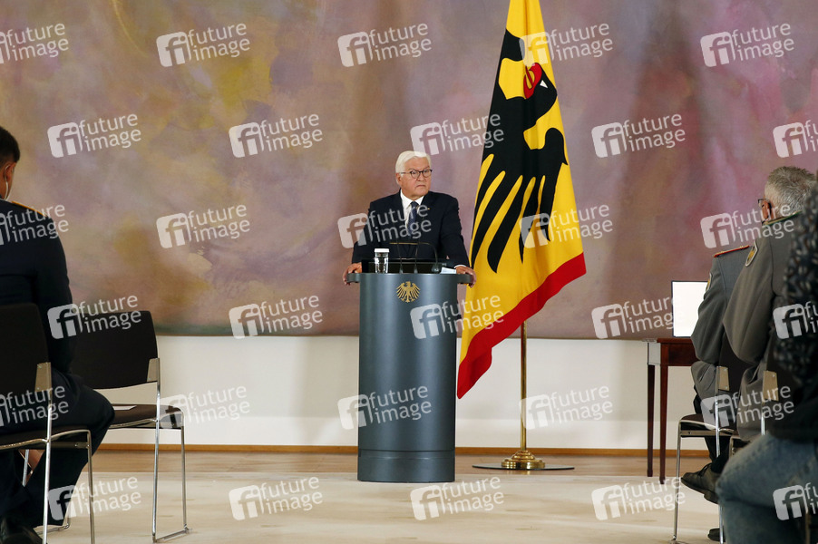 Frank-Walter Steinmeier bei der Verleihung des Verdienstkreuzes 1. Klasse an Brigadegeneral Jens Arlt im Schloss Bellevue. Berlin, 17.09.2021