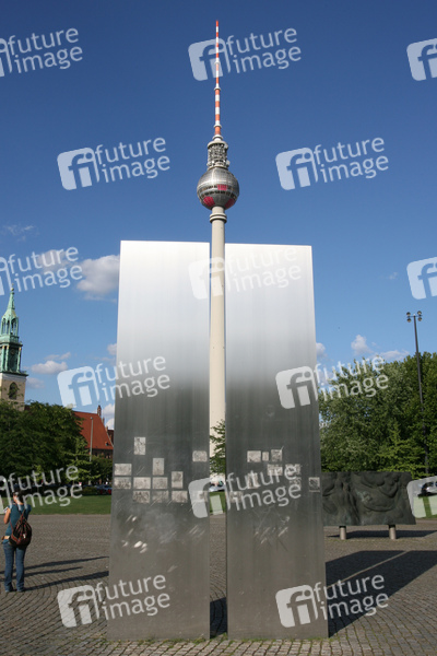 Denkmalanlage aus der Zeit der DDR im Berliner Stadtbezirk Mitte, eingeweiht am 4. April 1986, sie entstand nach Plänen des Bildhauers Ludwig Engelhardt, im Bogen angeordnet sind 4 doppelseitigen Edelstahlstelen mit zahlreichen kleinformatigen Fotodokumenten aus der Geschichte der Arbeiterbewegung dauerhaft in die geschliffene Oberfläche erodiert, gestaltet vom von Arno Fischer, Peter Vogt, Norbert Blum, Hans Gutheil, Jürgen Frenkel, Günther Köhler und Friedrich Nostitz, im Hintergrund der Fernsehturm