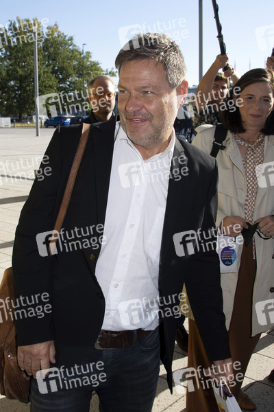 Robert Habeck und Katrin Göring-Eckardt bei der Ankunft zum Gespräch zwischen SPD, Bündnis 90/Die Grünen und FDP im CityCube Berlin. Berlin, 07.10.2021