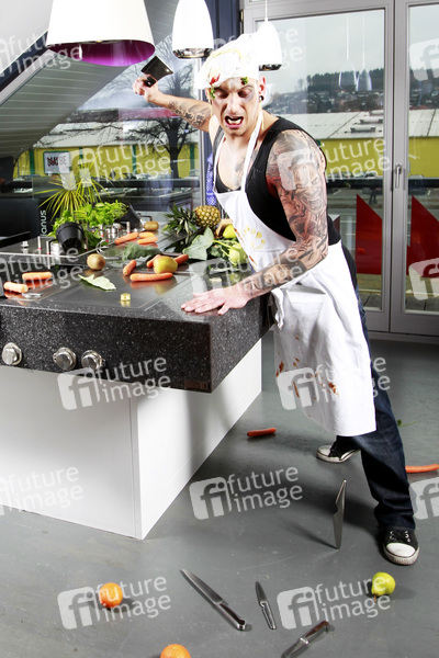 SOLsnap Cover-Model März 2012, Küche, Koch, Chef de Cuisine, Hackebeil, Tattoo, Tätowierung
