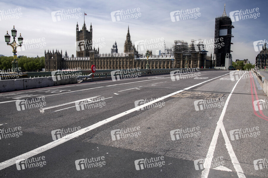 Westminster Bridge - Londons Straßen und Touristenattraktionen sind aufgrund des Coronavirus Lockdown menschenleer. London, 05.05.2020
