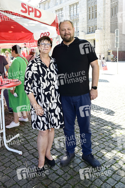 Saskia Esken und Ralf Hofmann bei einer Wahlkampfveranstaltung der SPD zur Landtagswahl in Sachsen auf dem Postplatz. Görlitz, 10.08.2024