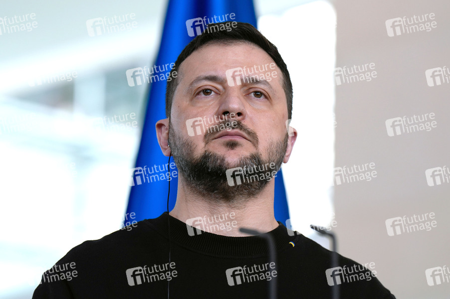 Wolodymyr Selenskyj beim Empfang des Präsidenten der Ukraine zu einem gemeinsamen Gespräch mit dem Bundeskanzler und anschließendem Pressestatement im Bundeskanzleramt. Berlin, 16.02.2024