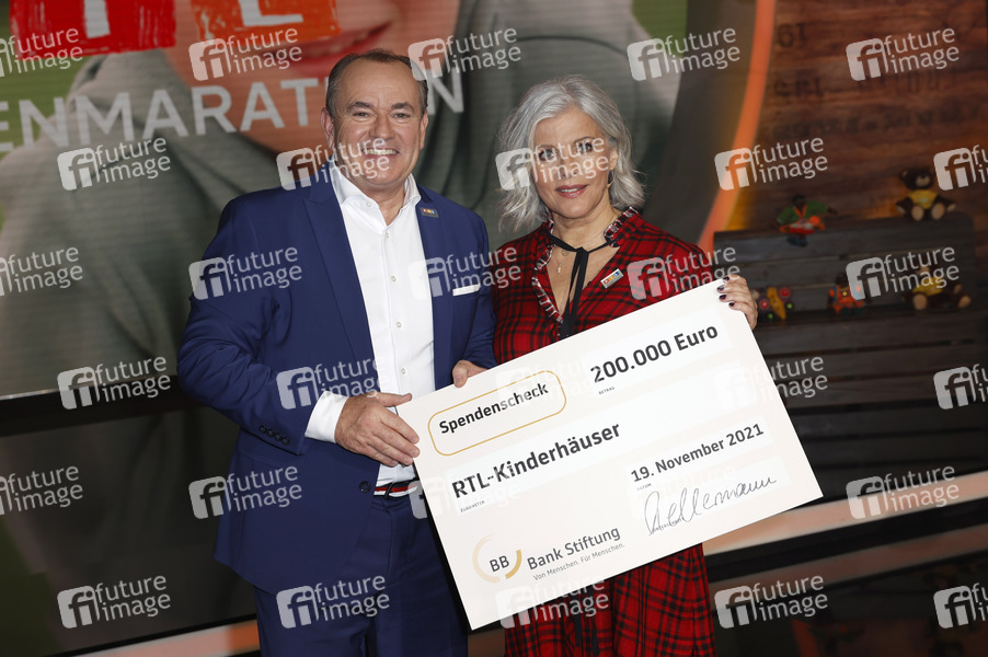 Wolfram Kons und Birgit Schrowange beim 26. RTL-Spendenmarathon 2021 im Studio 8 der EMG Studios. Hürth, 19.11.2021