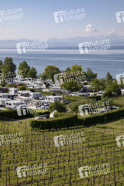 Seit dem 14.Mai 2021 sind in Baden-Württemberg die Campingplätze unter Auflagen wieder geöffnet und am Bodensee meistens voll belegt. Hagnau am Bodensee, 02.06.2021