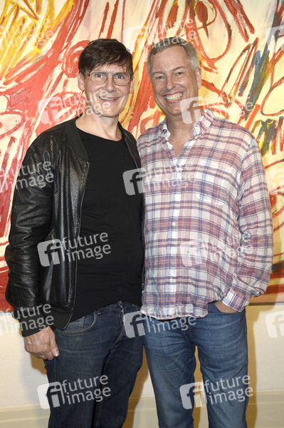 Thomas Hermanns mit Ehemann Wolfgang Macht bei der Eröffnung der Alexander Höller Ausstellung 'F*CK THEM' in der Galerie Schmalfuss. Berlin, 19.08.2021