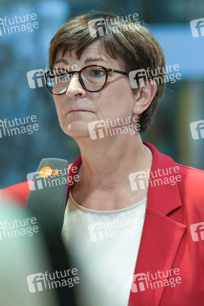 Saskia Esken bei einem Pressestatement während des Treffens des SPD-Parteivorstandes im Willy-Brandt-Haus zu den Landtagswahlen in Thüringen und Sachsen. Berlin, 01.09.2024