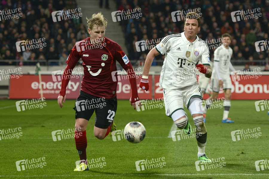 Frantisek Rajtoral und Mario Mandzukic beim Fußball Bundesliga Spiel Hannover 96 gegen FC Bayern München (0:4) in der HDI Arena. Hannover, 23.04.2014