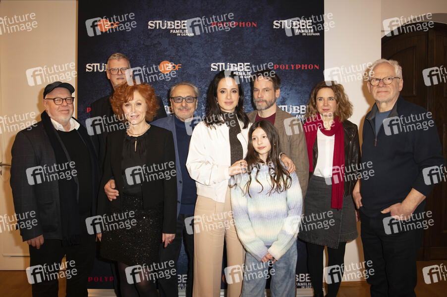 Pit Rampelt, Christoph Bicker, Heike Trinker, Wolfgang Stumph, Greta Kasalo, Stephanie Stumph, Wanja Mues, Juliane Mieke und Peter Kahane beim Preview des ZDF-Films 'Stubbe - Familie in Gefahr', dem finalen Film nach 30 Jahren der 'Stubbe'-Reihe, in der Vertretung des Freistaates Sachsen beim Bund. Berlin, 11.02.2025