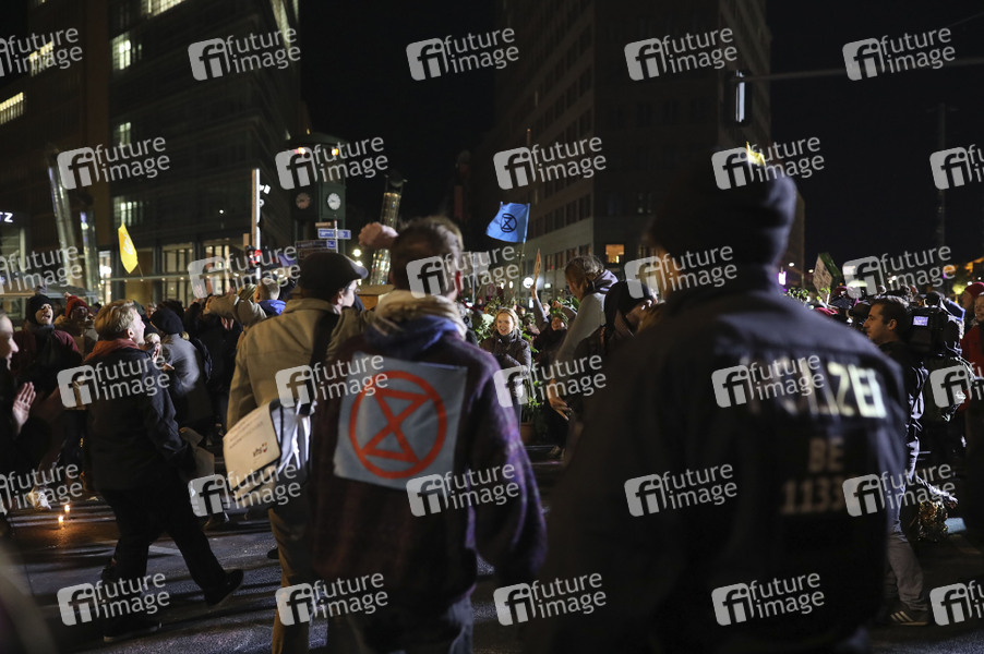 Aktivisten der Klimabewegung 'Extinction Rebellion' blockieren den Potsdamer Platz. Berlin, 07.10.2019