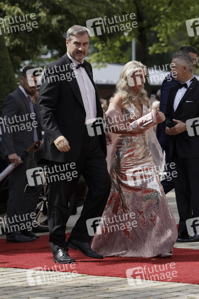 Markus Söder mit Ehefrau Karin Baumüller-Söder bei der Eröffnung der 113. Richard-Wagner-Festspiele 2025 mit der Neuinszenierung von 'Die Meistersinger von Nürnberg' im Bayreuther Festspielhaus. Bayreuth, 25.07.2025
