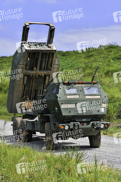 M142 High Mobility Artillery Rocket System, Raketenwerfer, Mehrfachraketenwerfer, HIMARS, Militärübung, Truppenübung, Militär, Soldaten, Soldat, Krieg, Konflikt, Training Area, Armee, Streitmacht, Streitkräfte