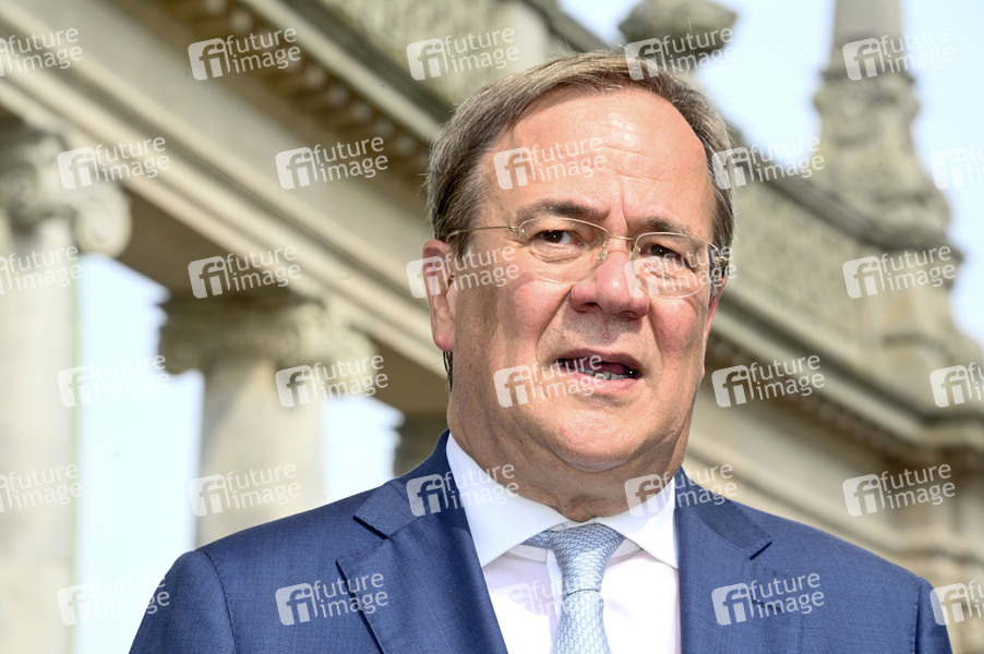 Armin Laschet bei einer Gedenkveranstaltung zum 60. Jahrestag des Baus der Berliner Mauer an der Glienicker Brücke. Potsdam, 13.08.2021