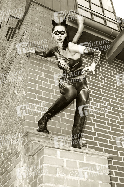 Catwoman Photoshooting mit SOLsnap-Model Elena im Hefehof-Center, Hameln. Bodypaint-Künstler: Jörg Düsterwald