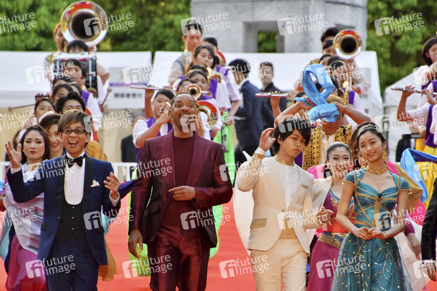 Koichi Yamadera, Will Smith, Tomoya Nakamura und Haruka Kinoshita bei der Premiere des Kinofilms 'Aladdin' im Yebisu Garden Place. Tokio, 16.05.2019