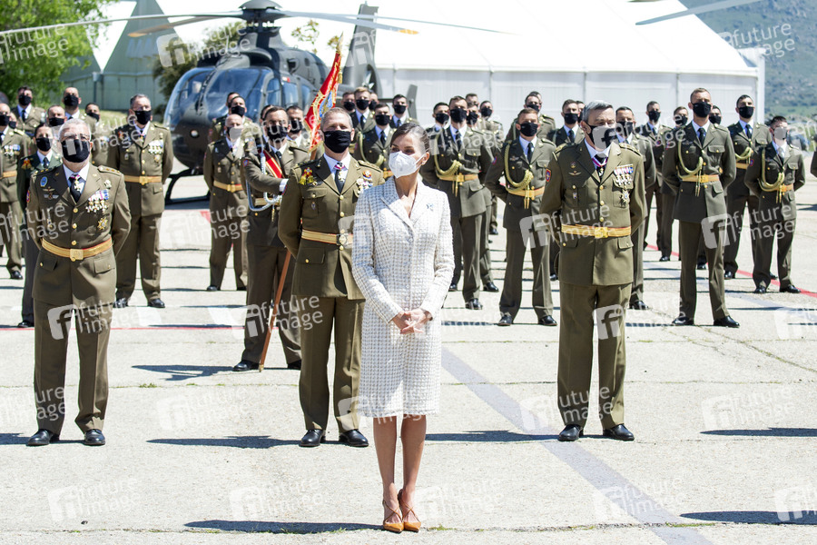 Königin Letizia von Spanien bei der Zeremonie der Übergabe der Nationalflagge an die ACAVIET (Luftfahrtakademie der Armee) in der Helipuerto Base Coronel Mate. Colmenar Viejo, 07.05.2021