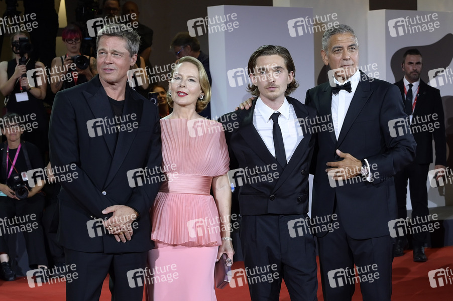 George Clooney, Austin Abrams, Amy Ryan und Brad Pitt bei der Premiere des Kinofilms 'Wolfs' auf der Biennale di Venezia 2024 / 81. Internationale Filmfestspiele von Venedig im Palazzo del Cinema. Venedig, 01.09.2024