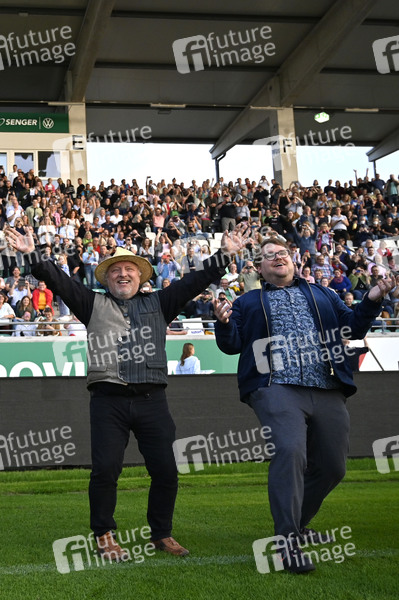 Axel Prahl und Björn Meyer bei der Premiere des ARD-Krimis 'Tatort - Ein Freund, ein guter Freund' zum 20 jährigen Jubiläum des Münsteraner Tatorts im Preußenstadion. Münster, 30.08.2022