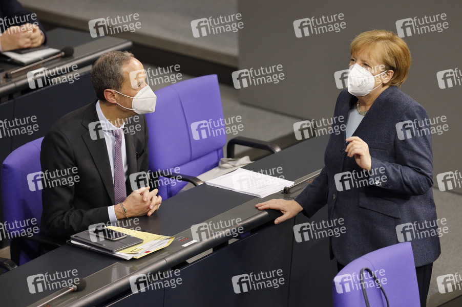 Angelea Merkel in der 201. Sitzung des Deutschen Bundestages im Reichstagsgebäude. Berlin, 16.12.2020