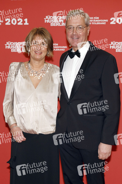 Norbert Röttgen mit Ehefrau Ebba Herfs-Röttgen bei der Verleihung des 'Preises für Verständigung und Toleranz' im Glashof des Jüdischen Museums. Berlin, 13.11.2021
